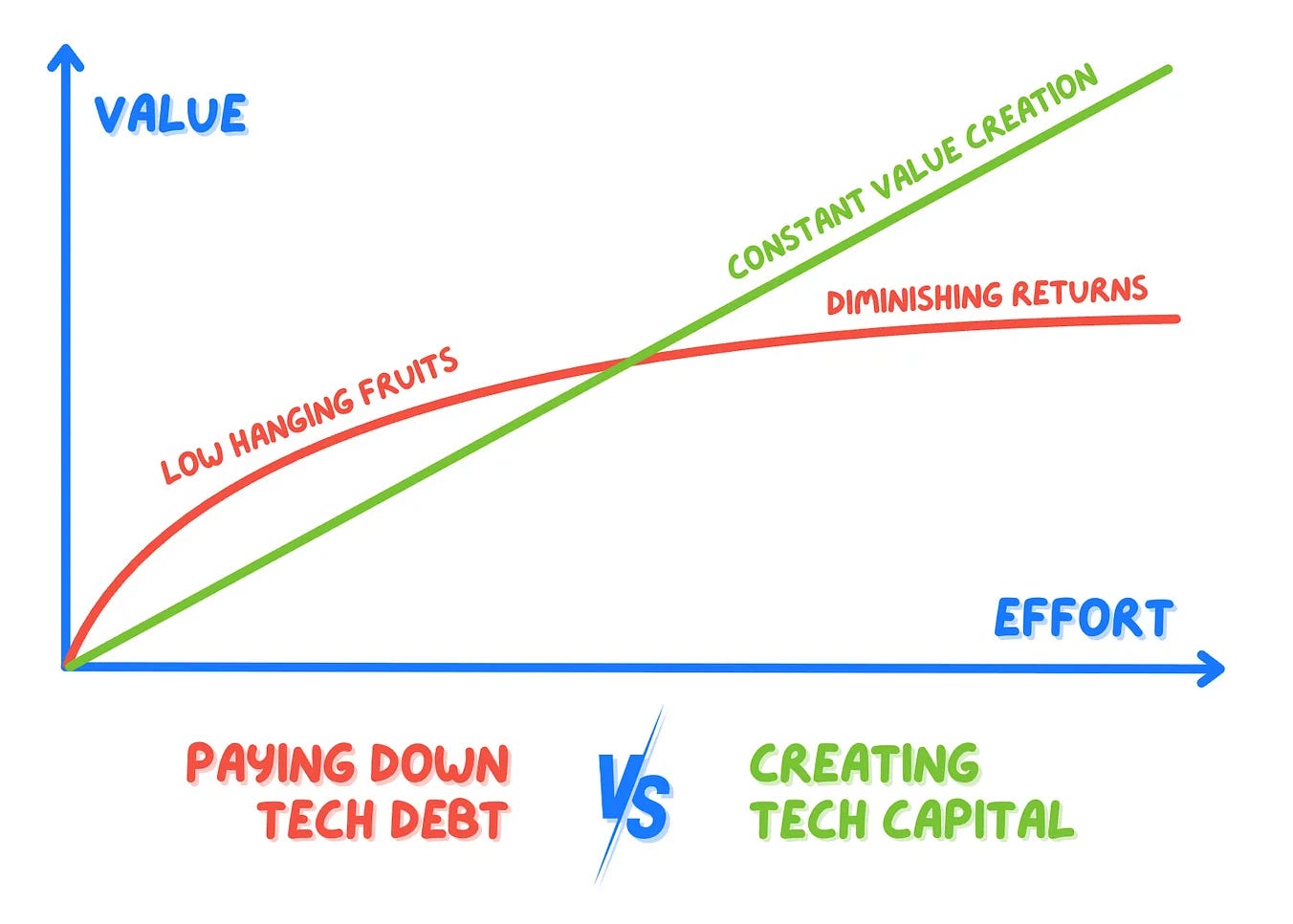 Last month I wrote an article together with my friend Aviv, where we argue that we need to move conversations from tech debt to tech capital.