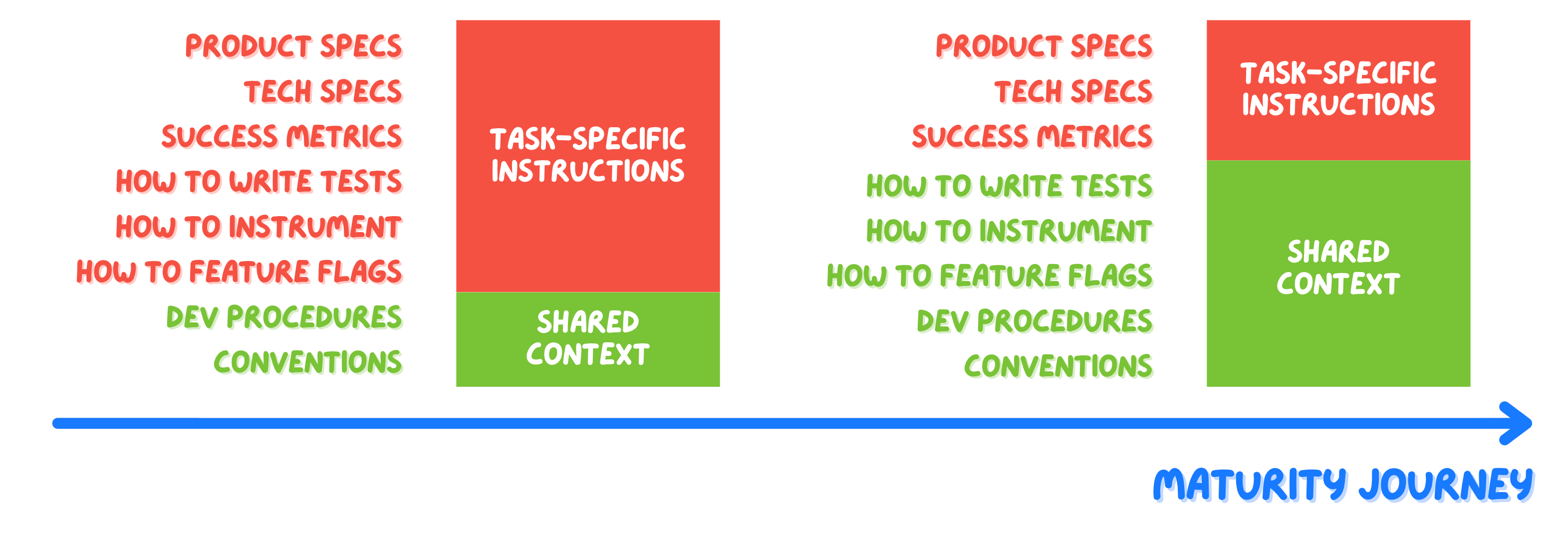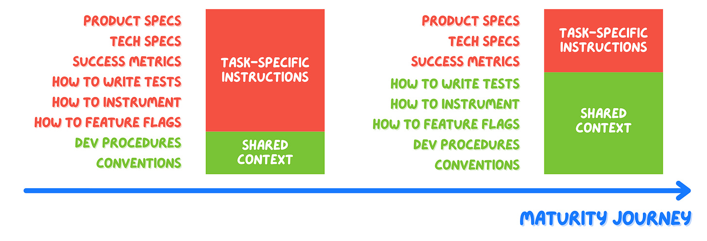 When an engineer builds a new feature, they obviously need product specs, UI designs, and technical requirements. But imagine they’re not on your team—they’re a contractor you’ve just brought in (which is closer to what an AI is). Suddenly they need much more: Do you require tests? How do you instrument features? What about feature flags? Naming conventions?