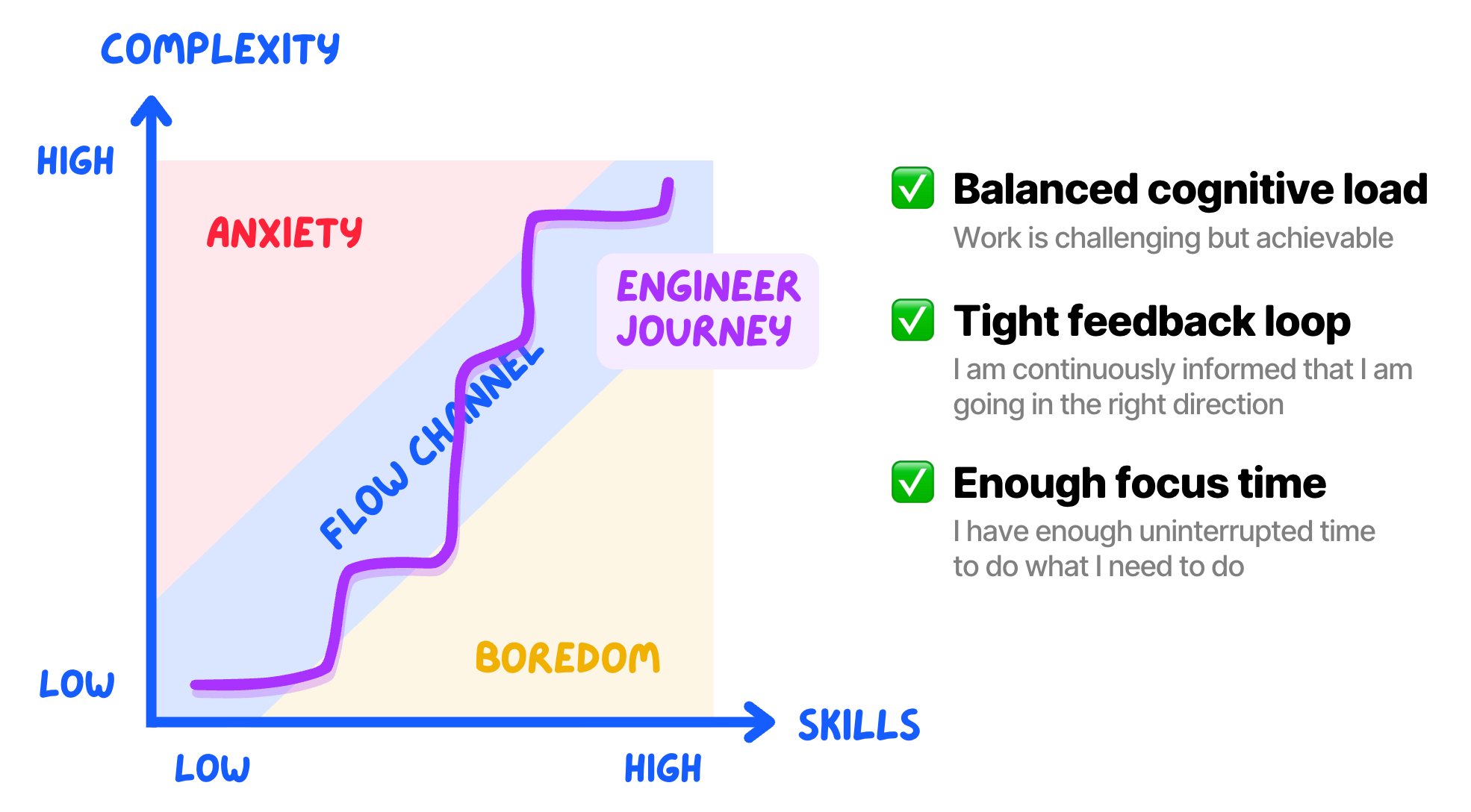 When these three things happen, engineers can enter a flow state: complete immersion in their activity with extreme focus, productivity, and personal enjoyment.