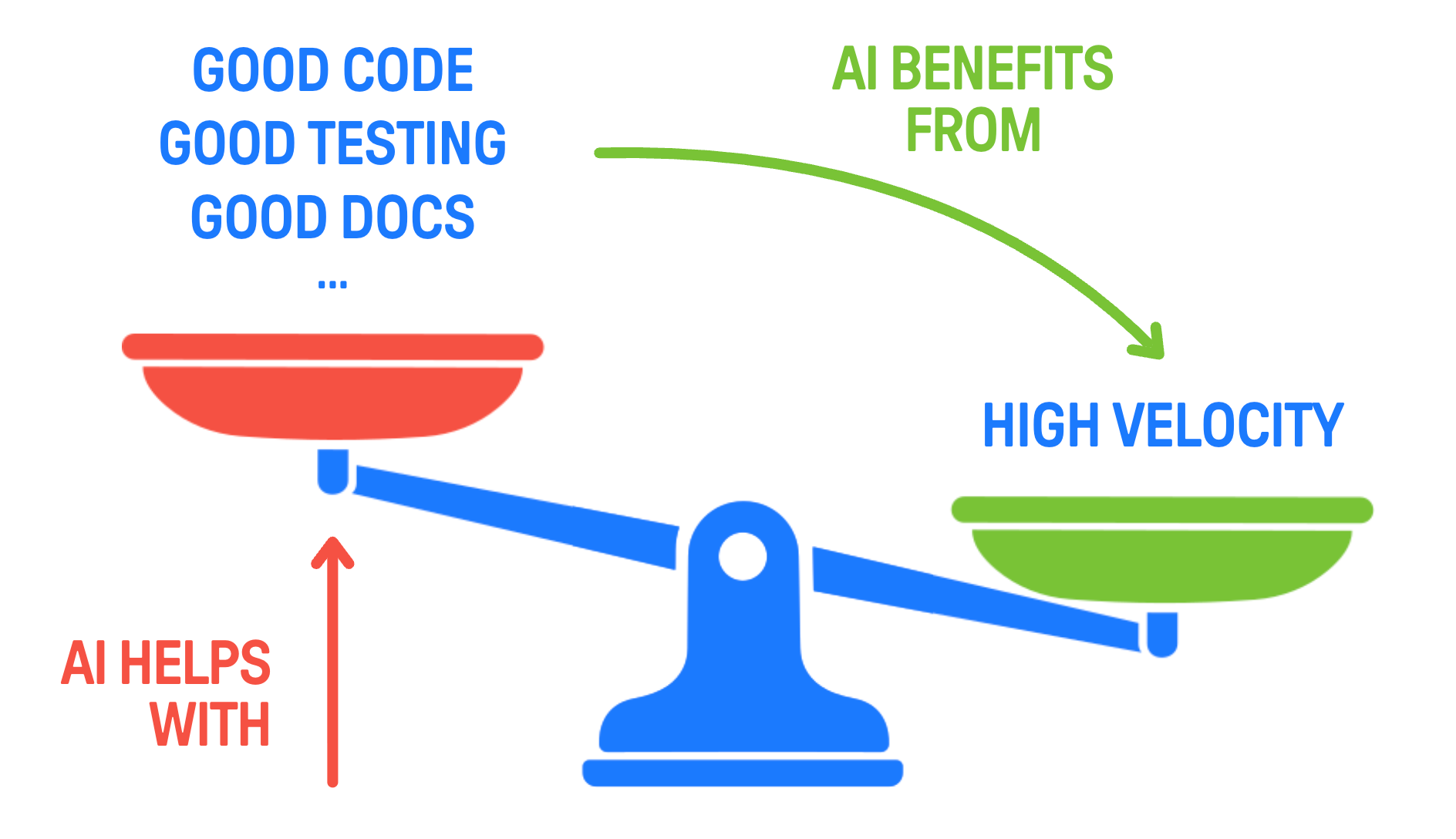 In other words, AI skyrockets the ROI of good engineering by simultaneously 1) reducing the effort, and 2) increasing the benefits.