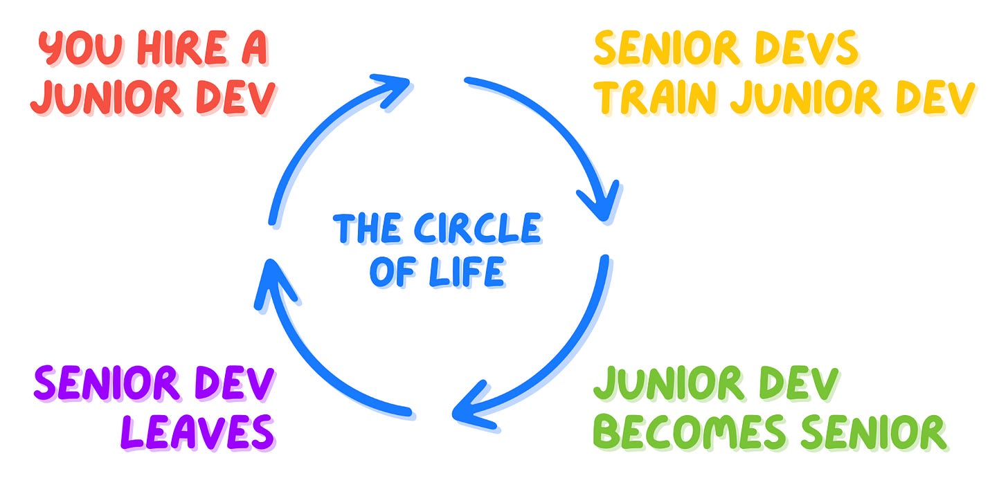 💸 Cost — Junior developers are cheaper and faster to hire, coming from predictable channels like universities and bootcamps that provide a steady pipeline of candidates.