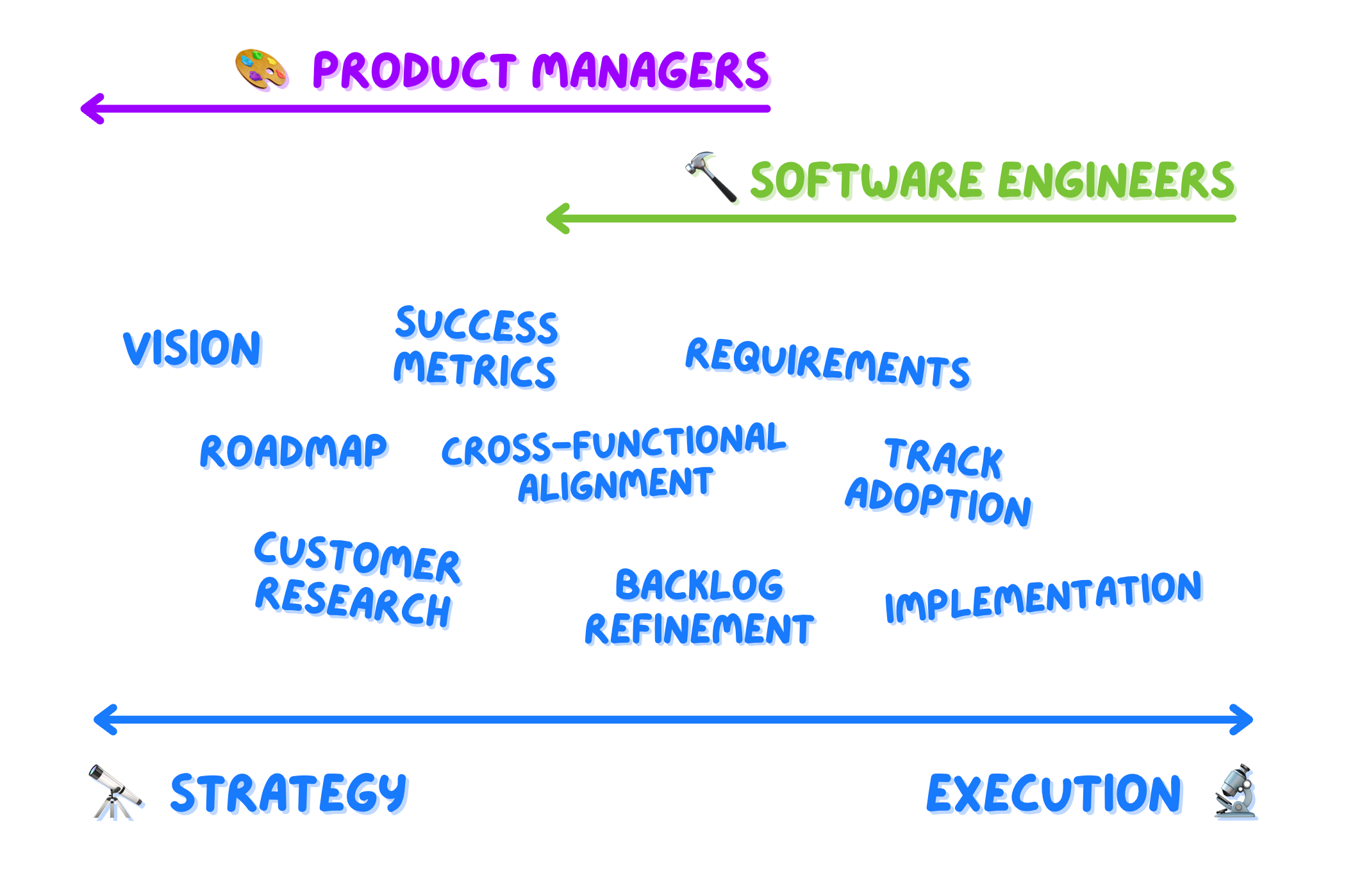 🔨 Engineers do most of the work — leading to suboptimal quality in case they miss some context or in case they don’t have the product chops to do things right.