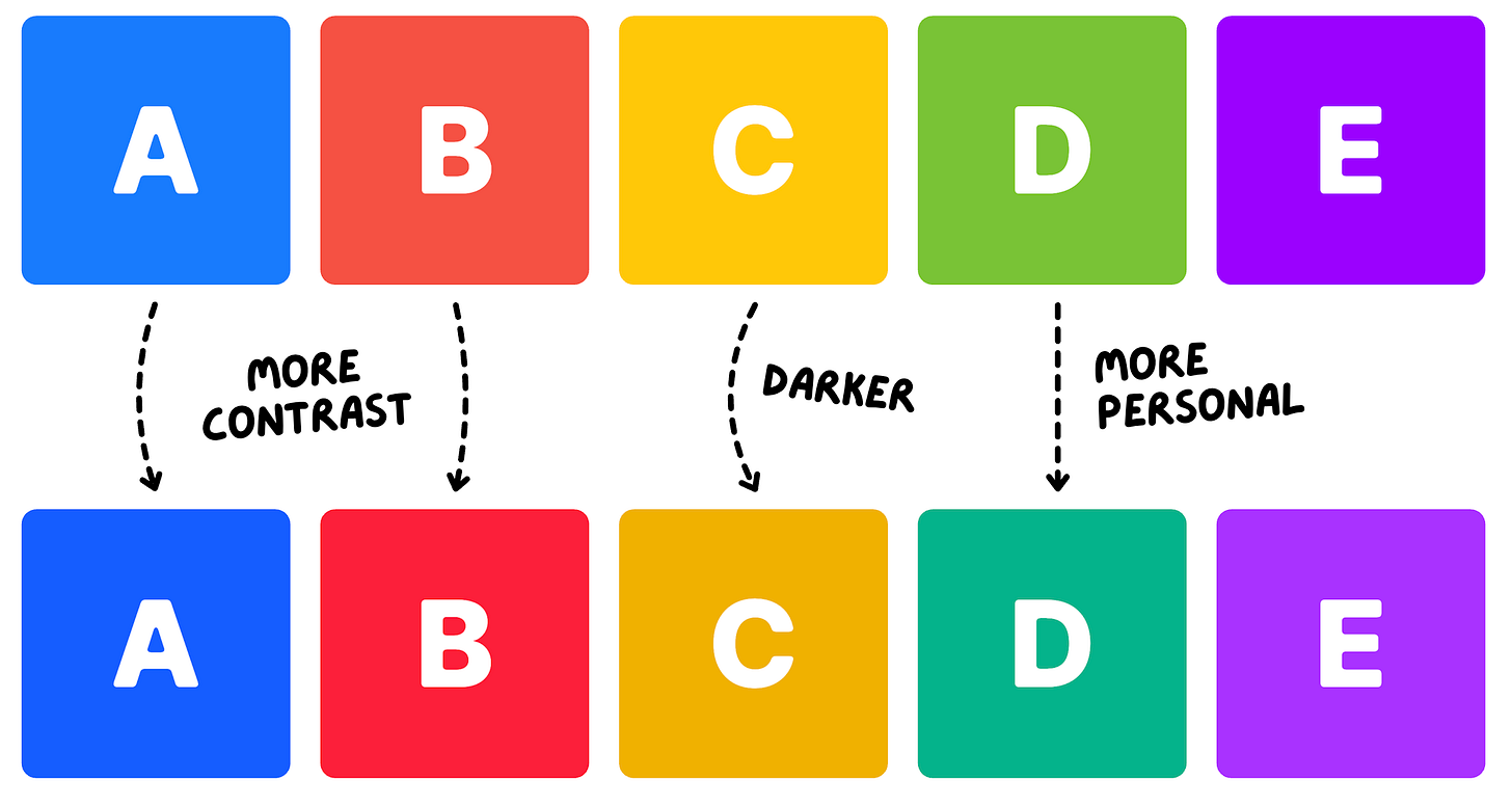 We also tweaked the main colors to create better balance, better contrast with text everywhere and a more personal palette.
