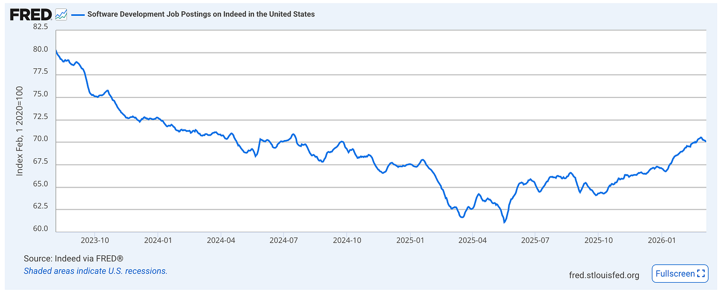 On Indeed, for example, job postings for software engineers have steadily increased since mid last year π