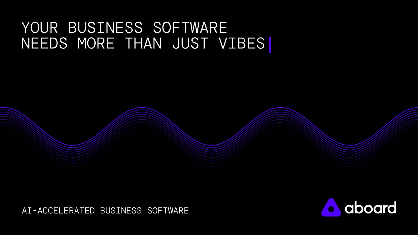Aboard is your partner for AI transformation. We use a proprietary AI platform to build software to help you run your business. Our software looks good, uses best practices, is highly secure, and ships in a fraction of the time it used to take.