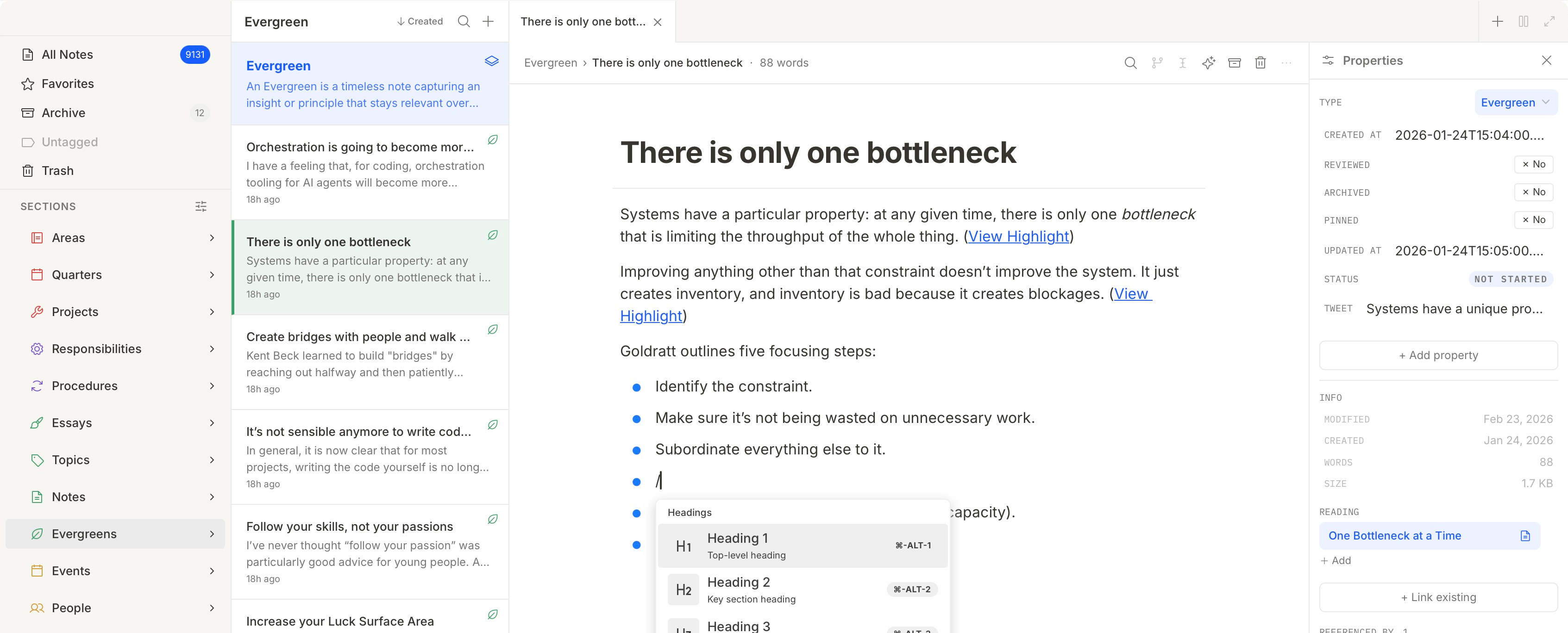 Part of this is just how I am: I have always cared about good note-taking, at least since university. But more recently (i.e. the last 5 years), this has become core to my job: managing my knowledge effectively is a big part of what allows me to pump new articles every single week.