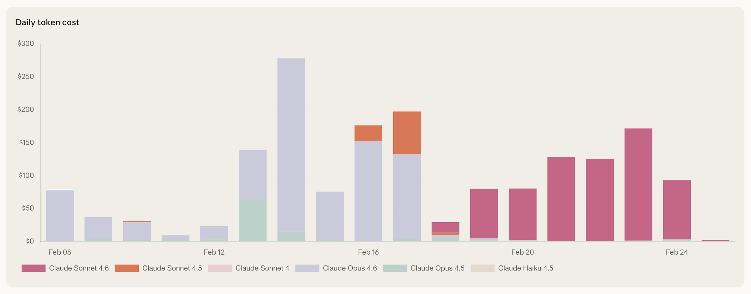 OpenClaw is another story. Since I started working seriously with it, I have spent an average of $150 / day on it. About $50 are spent on Refactoring and personal procedures, which leaves us with ~$100 / day on product development. Things are a bit better now with Sonnet 4.6, which I am now using exclusively instead of Opus, but numbers are still close to a full-time salary.