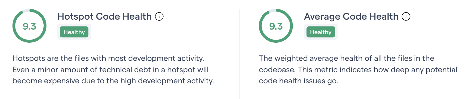 9.3/10 code health — as measured by the CodeScene MCP, which tests for module, function, and implementation level smells.