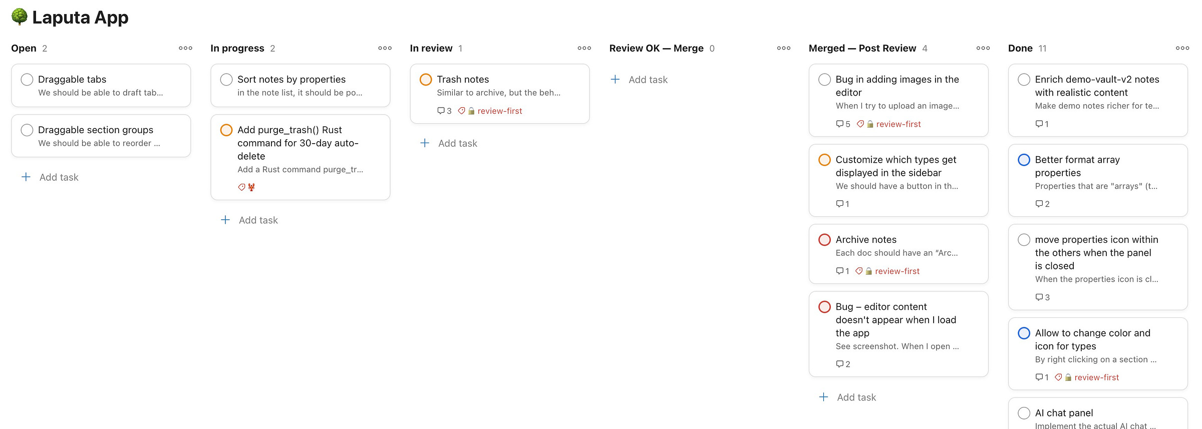 Open — tasks that have a full spec and are ready to be picked up