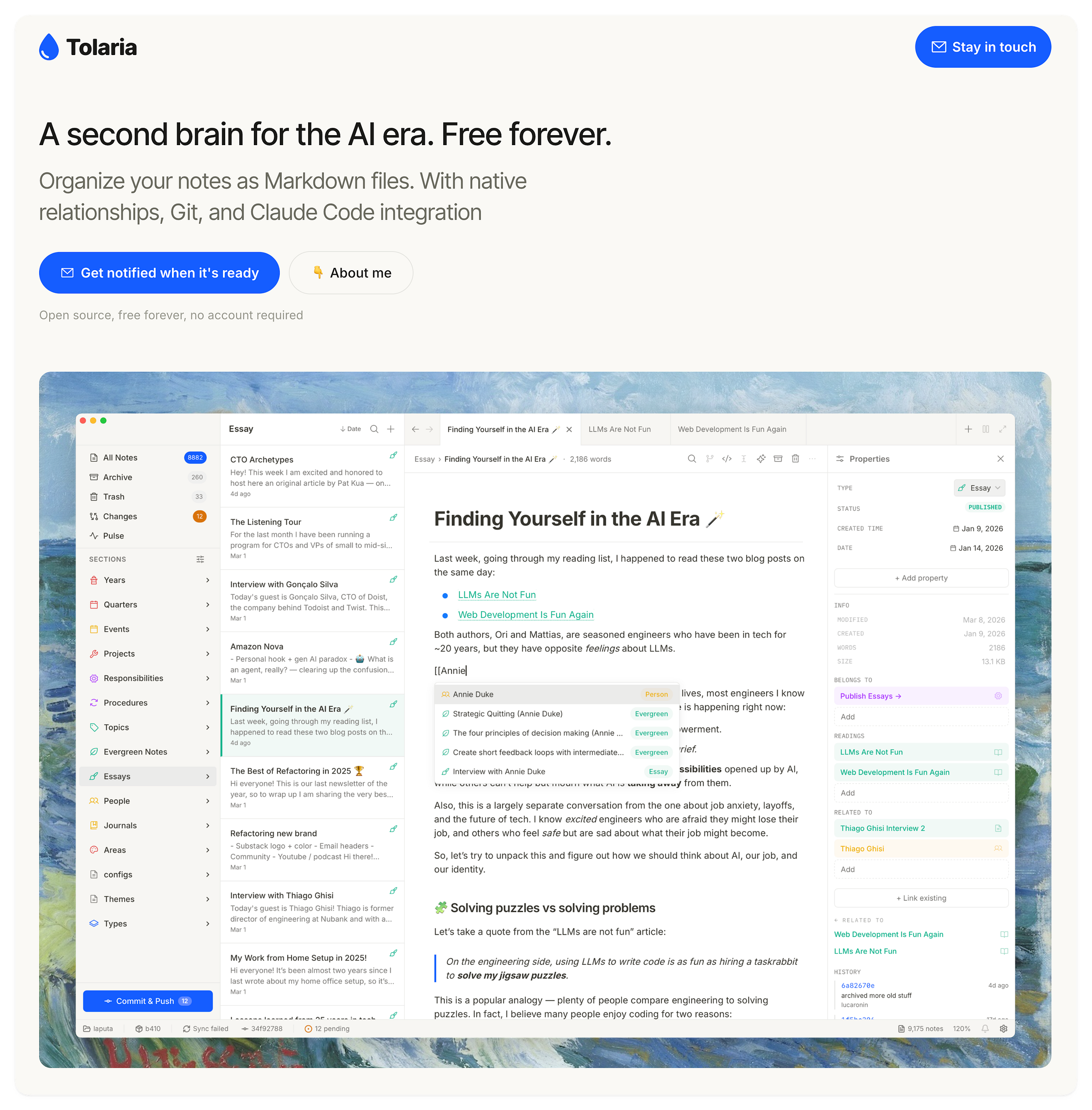 💧 Building Tolaria — a personal knowledge management app for the age of AI.