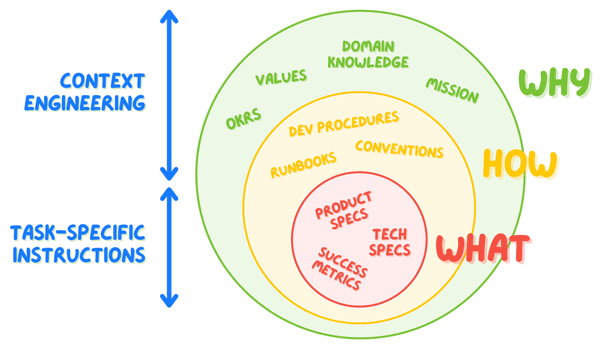 Why context can be evergreen (e.g. your principles, values, the business domain), about the future (e.g. your quarter goals), and about the past (e.g. your past goals, ADRs).