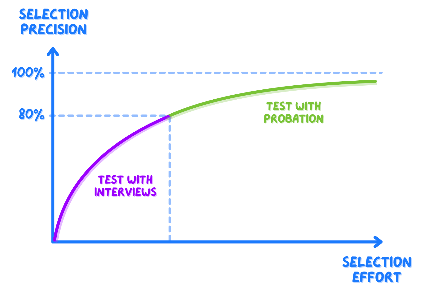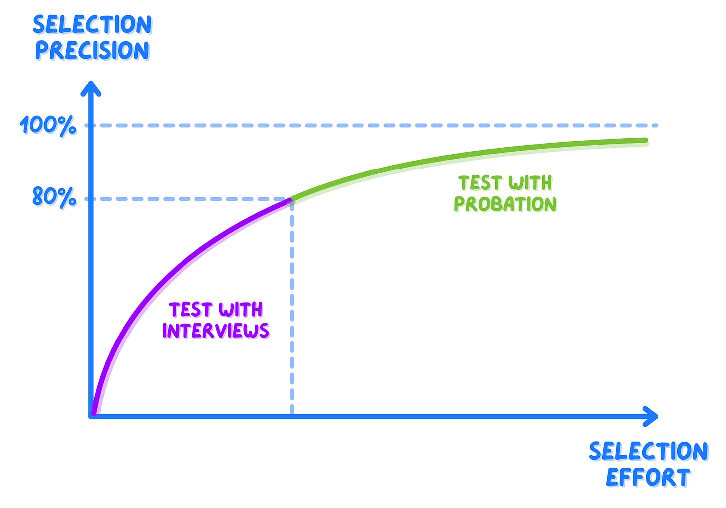 That’s because I have found interviews to get into diminishing-returns-land quite fast, so when you are—say—80% sure about a candidate, closing the final 20% costs you just as much as the rest of the process — so better to start real work and see how it goes.